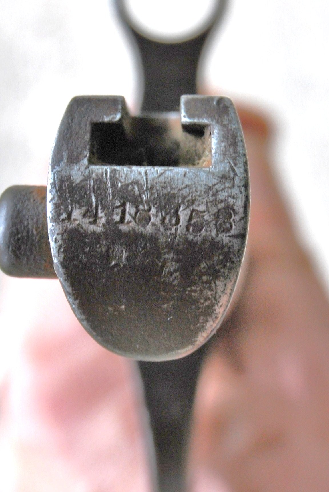 Võib ju olla aga võib ka mitte, pigem mitte. Mida see märk üldse tähendab, kas kontrollija või valmistaja tempel? Siin oleks ilmselt vaja hoopis jaapani filoloogi, kes nende märke tunneks. On ka minul täiesti juhuslikult üks arisaka tääk, sellel on samas kohas ka üks kirbu s..tt löödud. Kui antud täägil on "A täht" nurga kujulise raami sees, siis minul on pigem avatu karbi, st U - kujukise raami sees mingi kribukrabu, pigem selline kandiline Y (vene suur U). Ilmselt neid märke on üsna mitmeid...