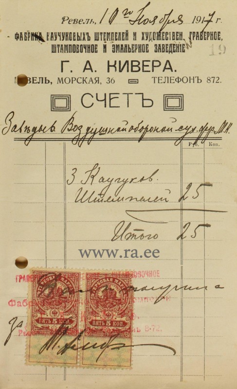 Templid PSMK Õhutõrjeüksuse blankettide ja paberimajanduse tarbeks telliti kohalikult Kiiveri firmalt.