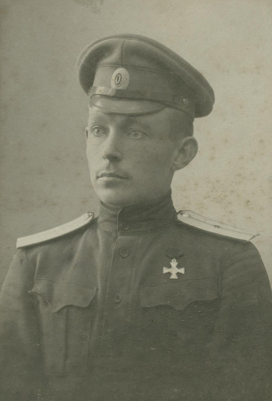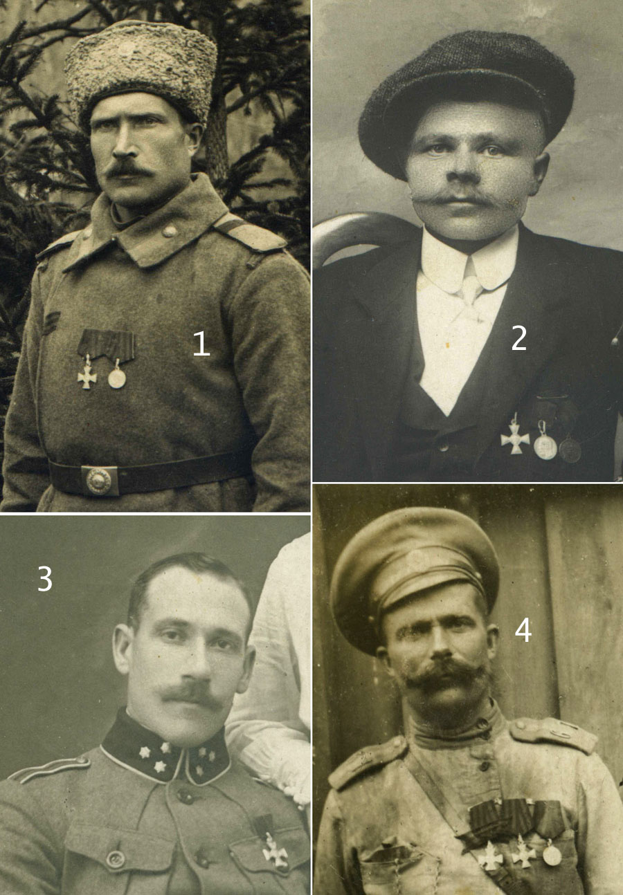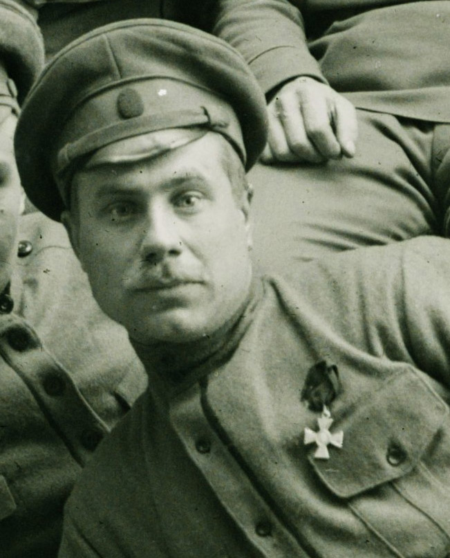 Üks heledate vuntsidega härra aga kannab pidupäeval ka Georgi risti.Kui foto tehtud arvatavalt 1917 kevad-suvel, siis mis aegadest võib see ristikandja rist olla? Pole ju nii sõjamehelikult noor enam.
