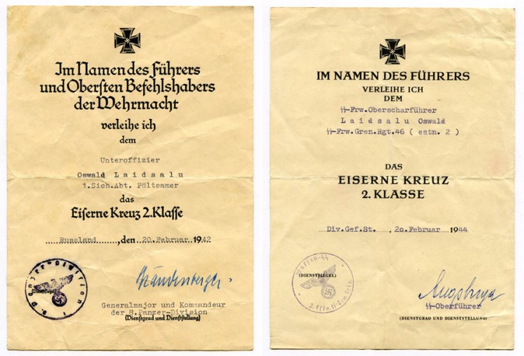 170. Oberscharführer Osvald Laidsalu - 2 x EK2