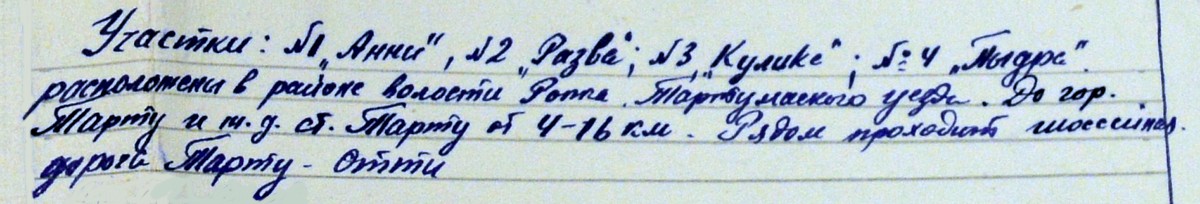 Kirja järgi olid jaoskonnad Tartust 4-16 km kaugusel, Tartu - Ot(t)i tee ääres või suunal.