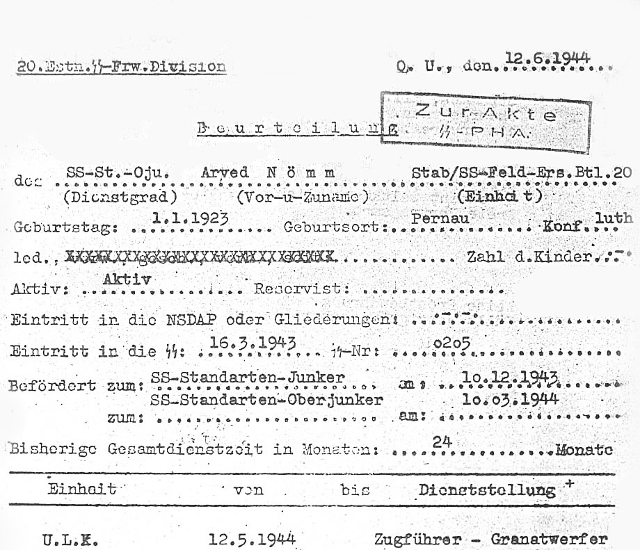Untersturmführer Arved Nõmm, kes R. Olm'i väitel oli 47/III käsundusohvitser.