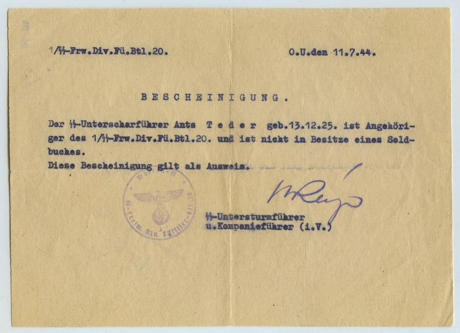 Ega ma lihtsalt nurisemise pärast ei nurisenud. Selle seeria ülesvõtetel jookseb läbi ka Uscha. Ants Teder aga ta lahkus 11. juulil rindelt kusagile tagalasse. Minek olevat olnud veel nii kiire, et auto juba ootas ja kuna ei olnud aega Soldbuch'i staabist üles otsida siis anti pihku ajutine tunnistus, mis kehtis SB asemel.ivalO kirjutas:Uscha ennist nurises, et narvakate pildid ei ole Auvere positsioonidel tehtud ...