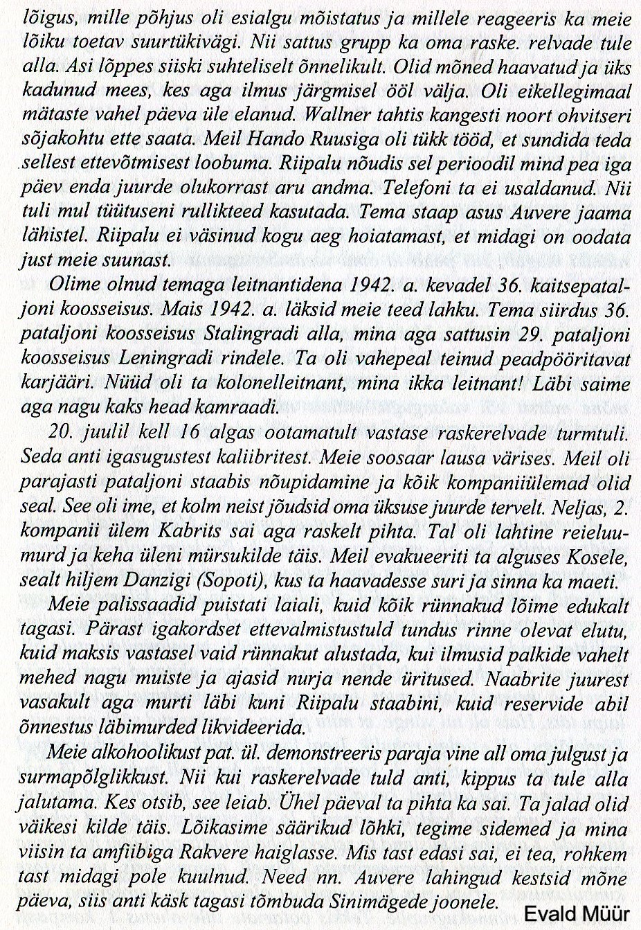 Leitnant Evald Müüri mälestused Auverest Narva pataljoni triloogiast.