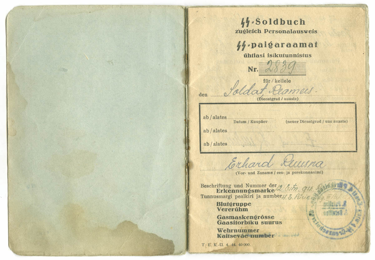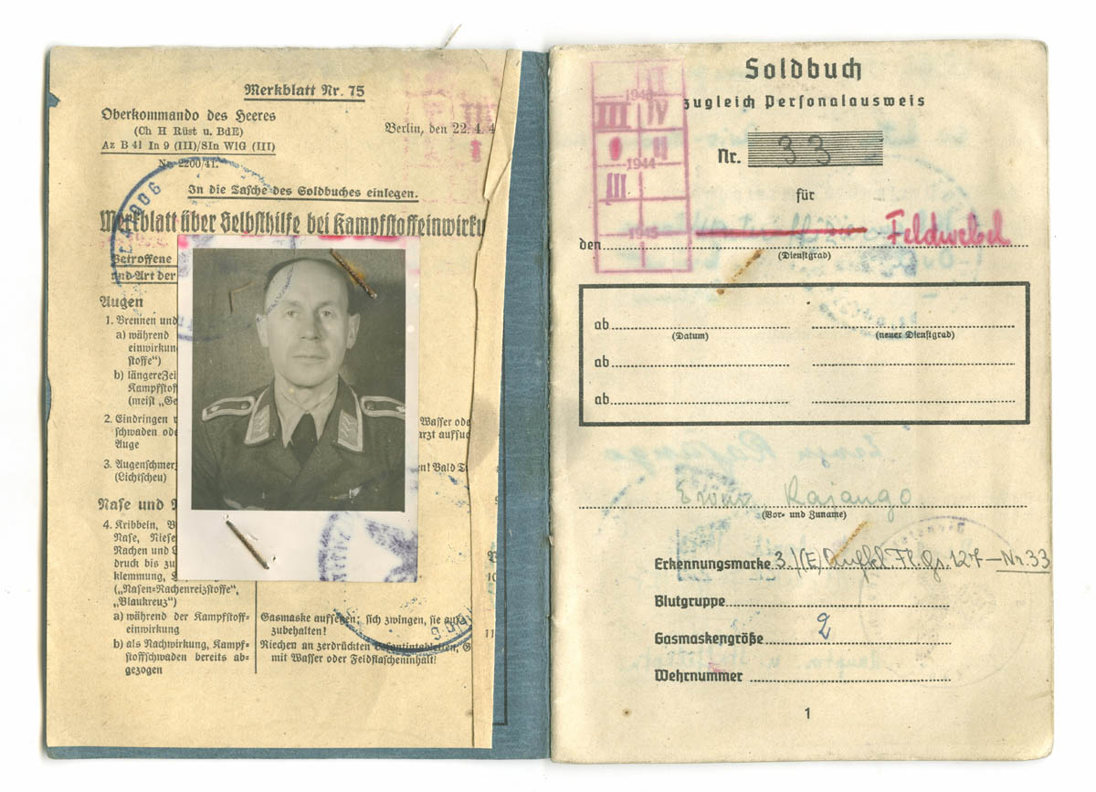 Kolmes sõjaväes teeninud SS-Freiwillige Obergrenadier Paul Subi Soldbuch.