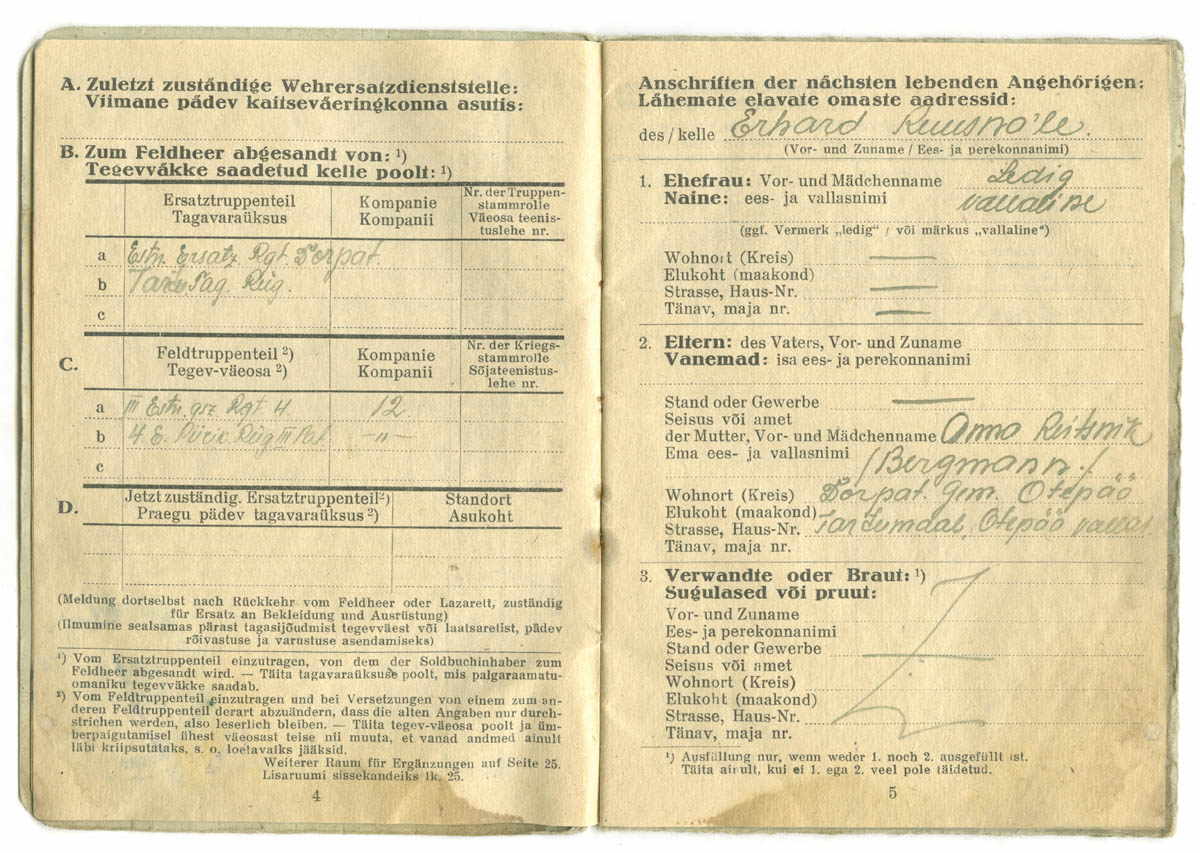 Siin on veel üks täpselt samasuguste kuupäevade ja teenistuskohtadega Soldbuch.