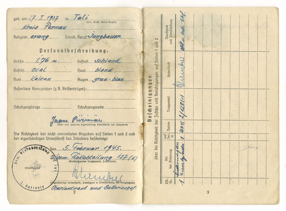 uscha kirjutas:See palgaraamat on välja kirjutatud SS-Ersatzkommando Estland Pärnu Kaitseväeringkonna teenistuses olnud reamehele Juhan Suura'le.