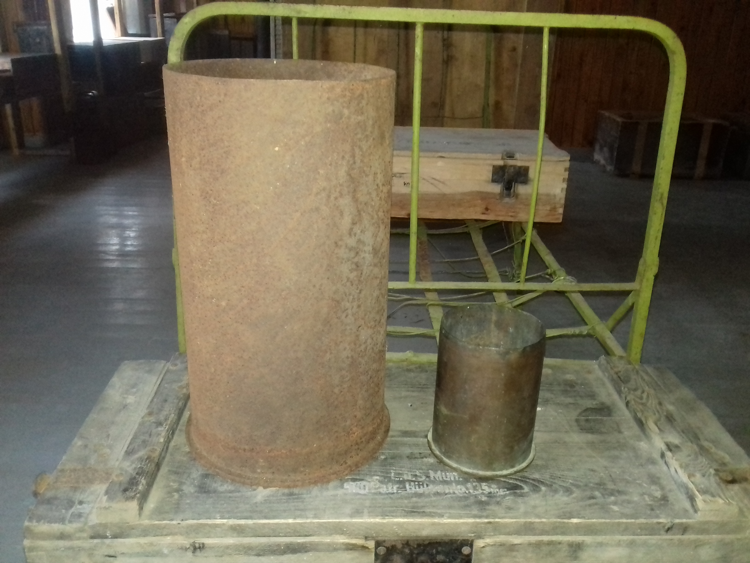 10,5cm messing hülss ja 21cm mörseri hülsi. 75mm toru jupike sai ka koju toodud.