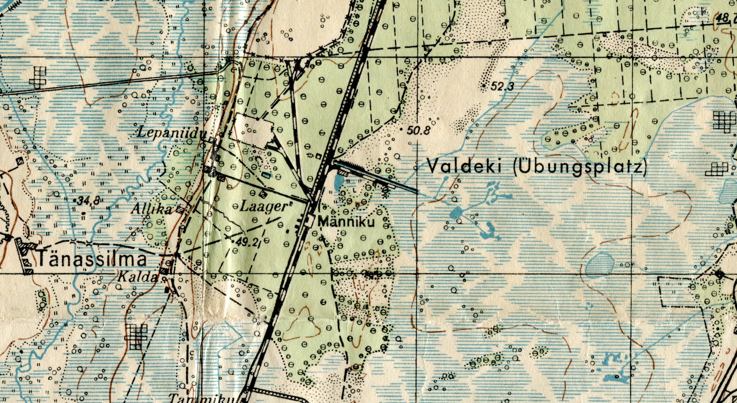 Männiku laager ja lähiümbrus 1943. aasta jaanuaris trükitud WH kaardilt ...