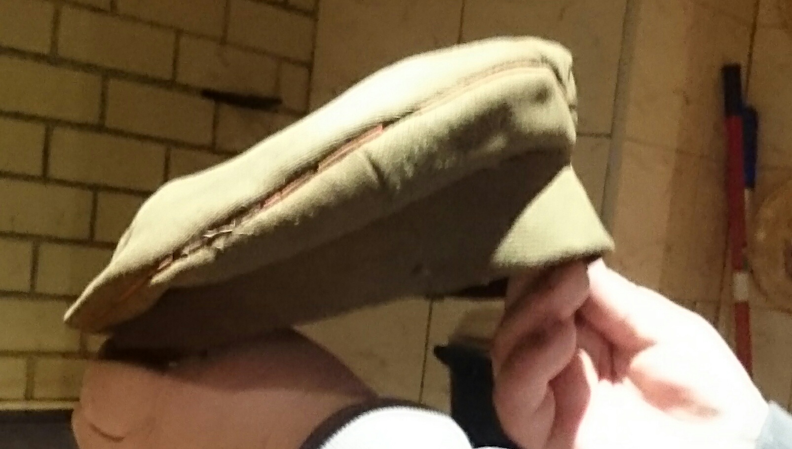 Tere.Saaremaa pööning andis välja sellise nukra mütsi.Mütsil punane triip.Kas kahurvägi?