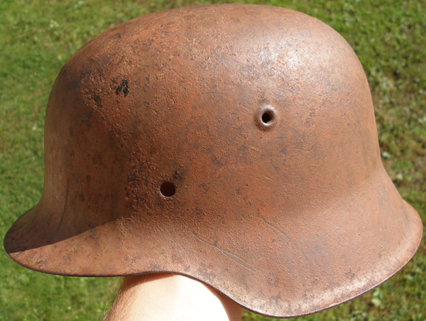 Tervist foorumirahvas! Hakkasin mina ka siis otsima endale sõjaaegset tavaari. Muidu huvi on olnud pikka aega juba, kuid polnud aega, et sellest huvist hobi teha, kuid nüüd sain endale siis 400.- eest kiivrikoore, mis on mu kogu esimene ese. Kiivri veaks on see, et ta on üle värvitud ning all on puhas rooste. Ma lugesin varem foorumist, et kuidas värvi eemaldada, kuid ei tea kas julgen, kuna ühte kohta on juba auk sisse roostetanud. Kui keegi oskab soovitada, et kas eemaldada või mitte, siis võite mulle ps saata!
