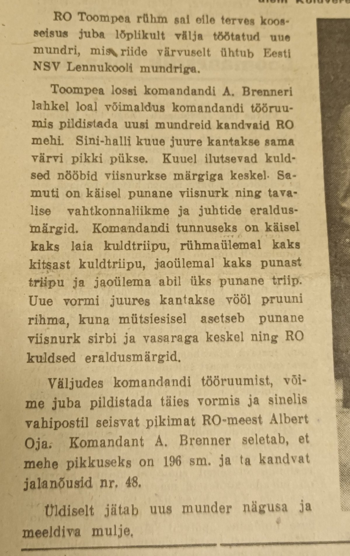 PS. Märkimist vääriv detail on aga muidugi rahvusvärvides lindike esmastel RO varrukalintidel. Nagu näha on olnud, siis esimestel okupatsiooninädalatel uus režiim sellist lõtku värske sümboolika kujundamise osas veel endale lubas ...