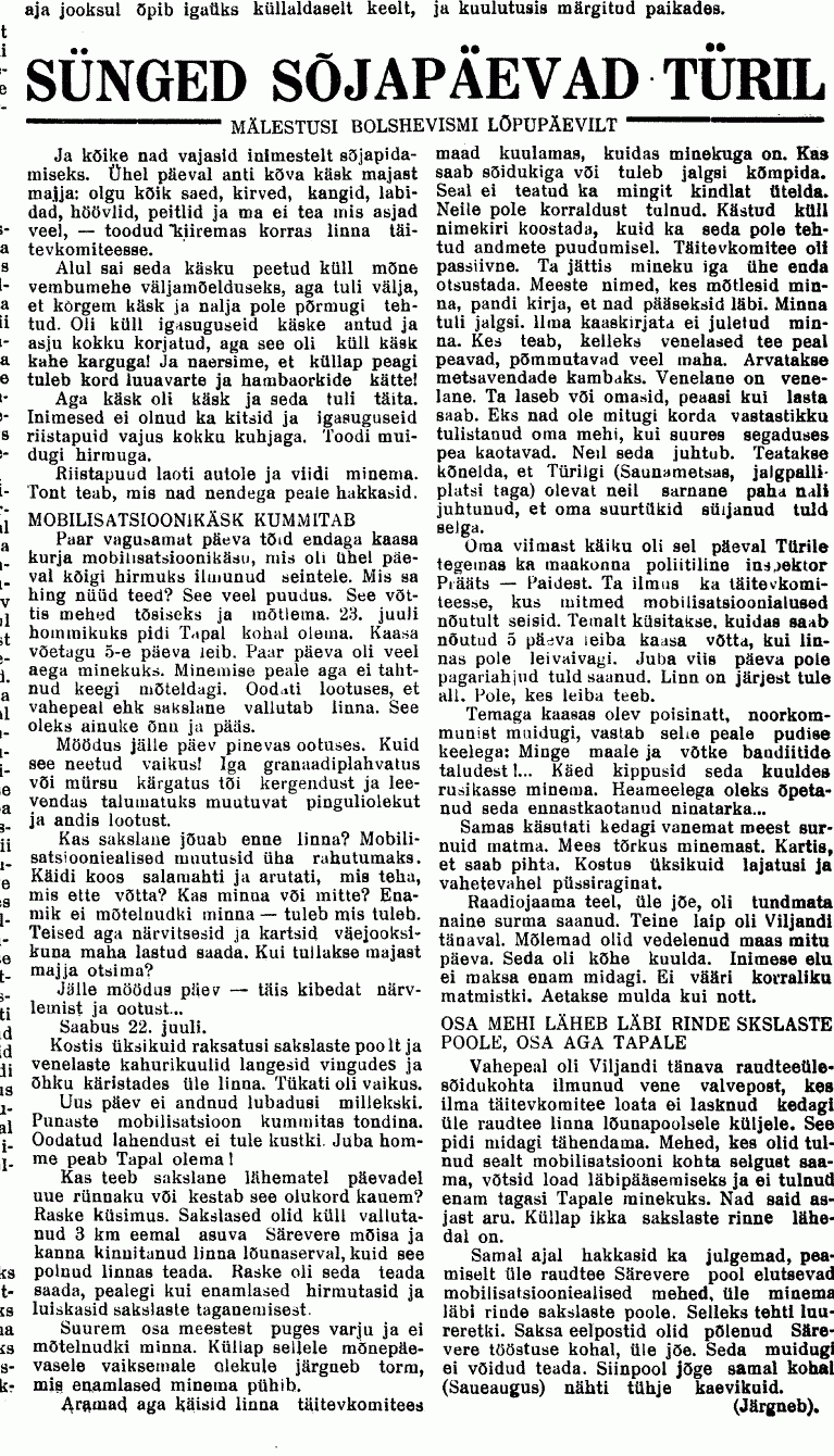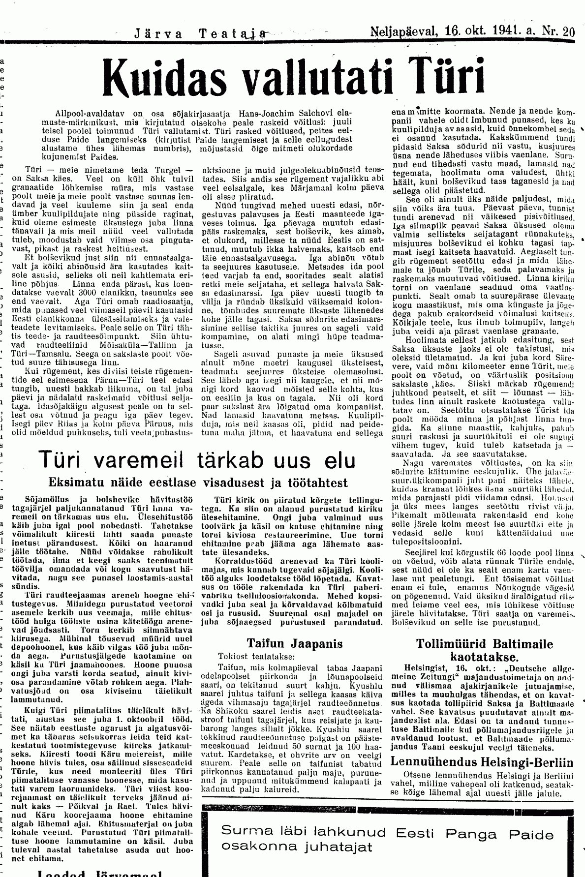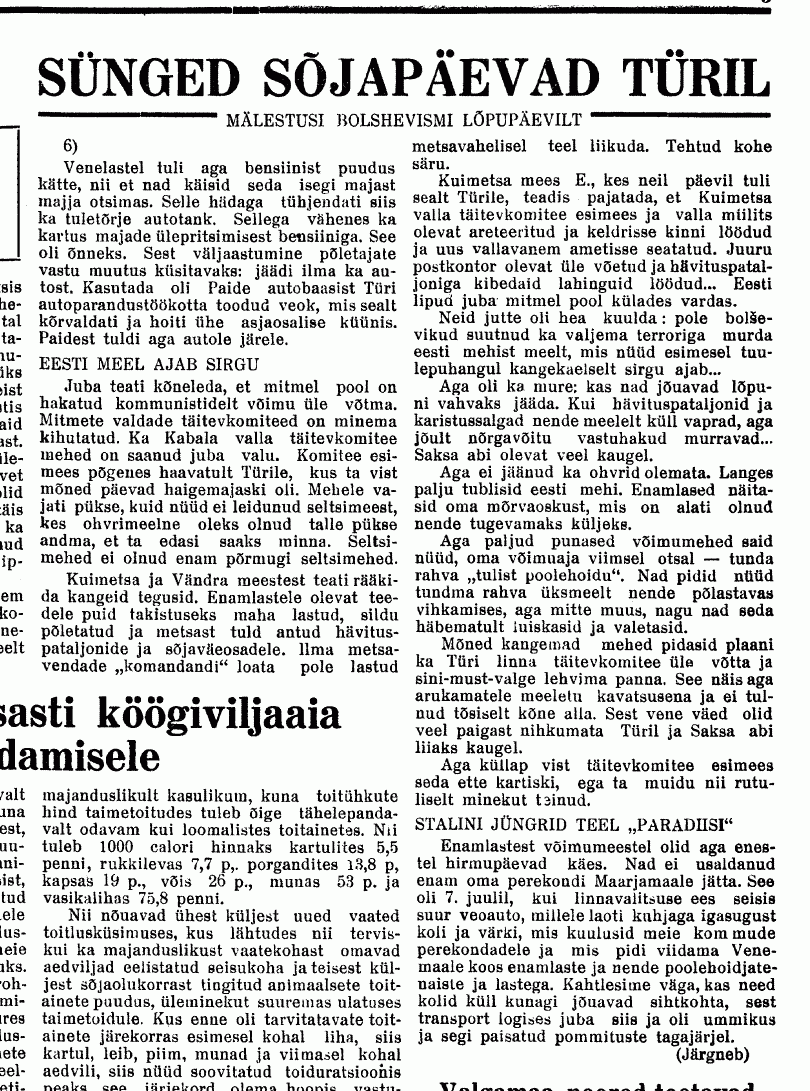 Natuke skänne "Järva Teatajast" september-oktoober 1941