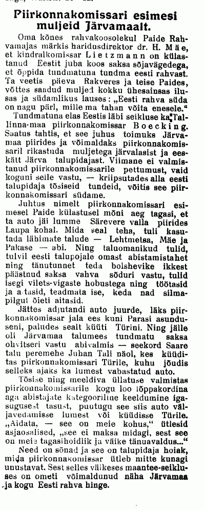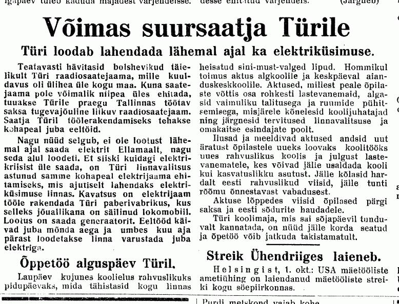 "...Nimekirja järgi otsustades veeti Türilt Venemaale 60 kilohertsine kõrgsagedusvastuvõtja, Marconi saatja juhtkristall, katoodtorud ja mitmesuguseid mõõteriistu (lainemõõtja, ampermeetrid, voltmeetrid) koguväärtuses 29 200 rubla.