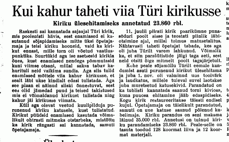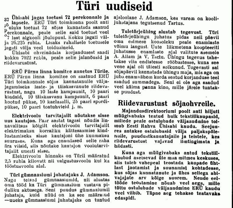 Näiteks oli täiesti töökorras kaks transformaatorit (300 kVA ja 10 kVA). Esimesest tõusis suurt kasu ka Türile, sest just sellega taastati linna elektrivarustus. /.../