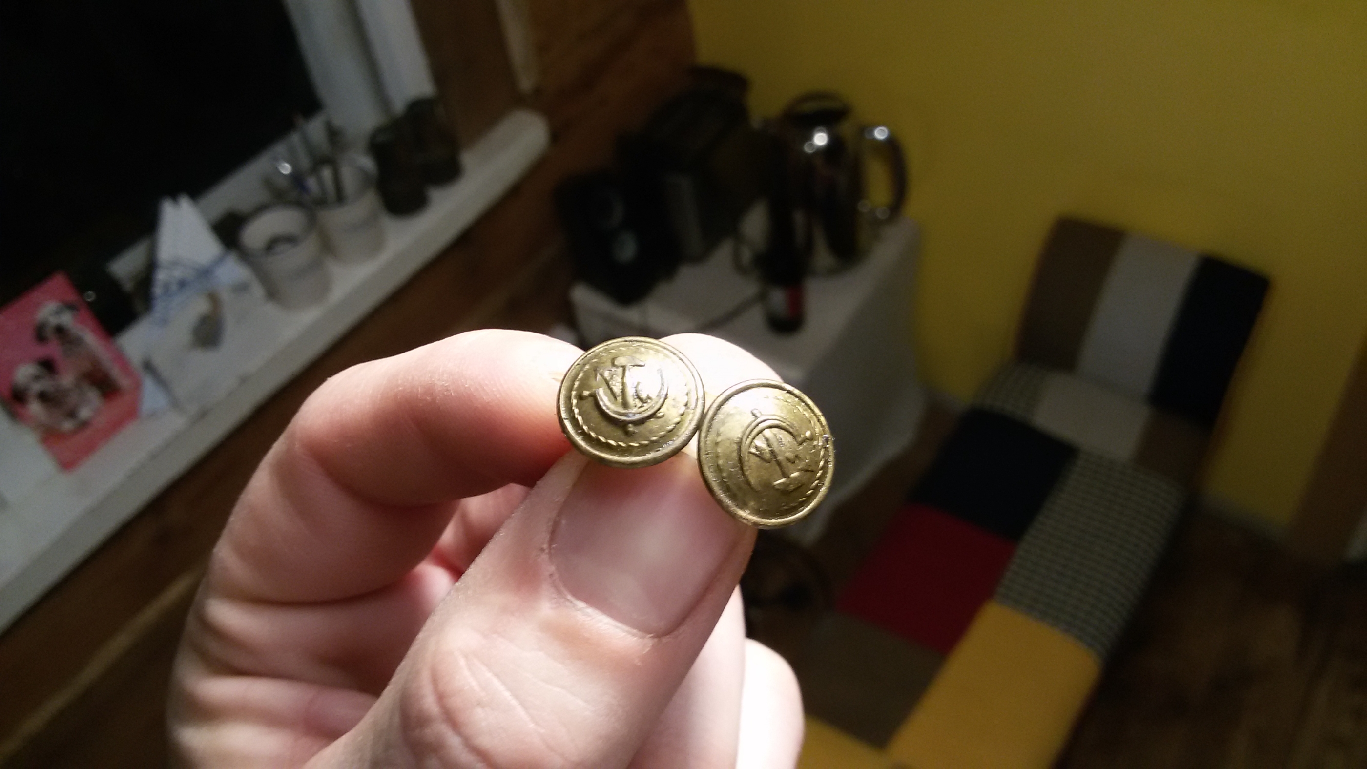 mitte päris. Embleemid on sõjaväevormi küljest, nööbid sideministeeriumi mundri küljest. Mees võis isegi sama ollaoliver kirjutas:Samas karbis oli ka kaks nööpi, kas need on samuti elektrotehniku küljest pärit?