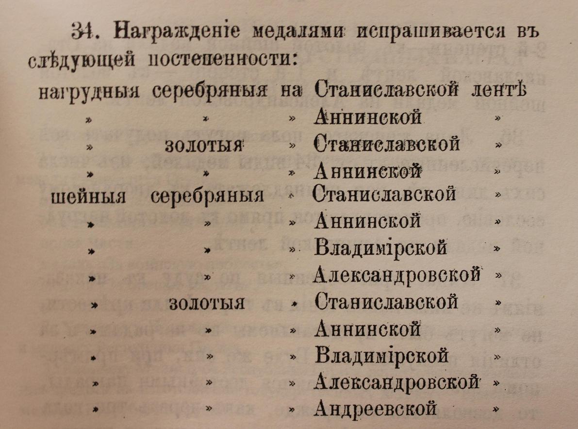 Before the Great War there was a strict order of awarding by this medal, but since war begun rules was bit changed, so some military ranks could be awarded directly by silver chest medal with a Anna's ribbon.