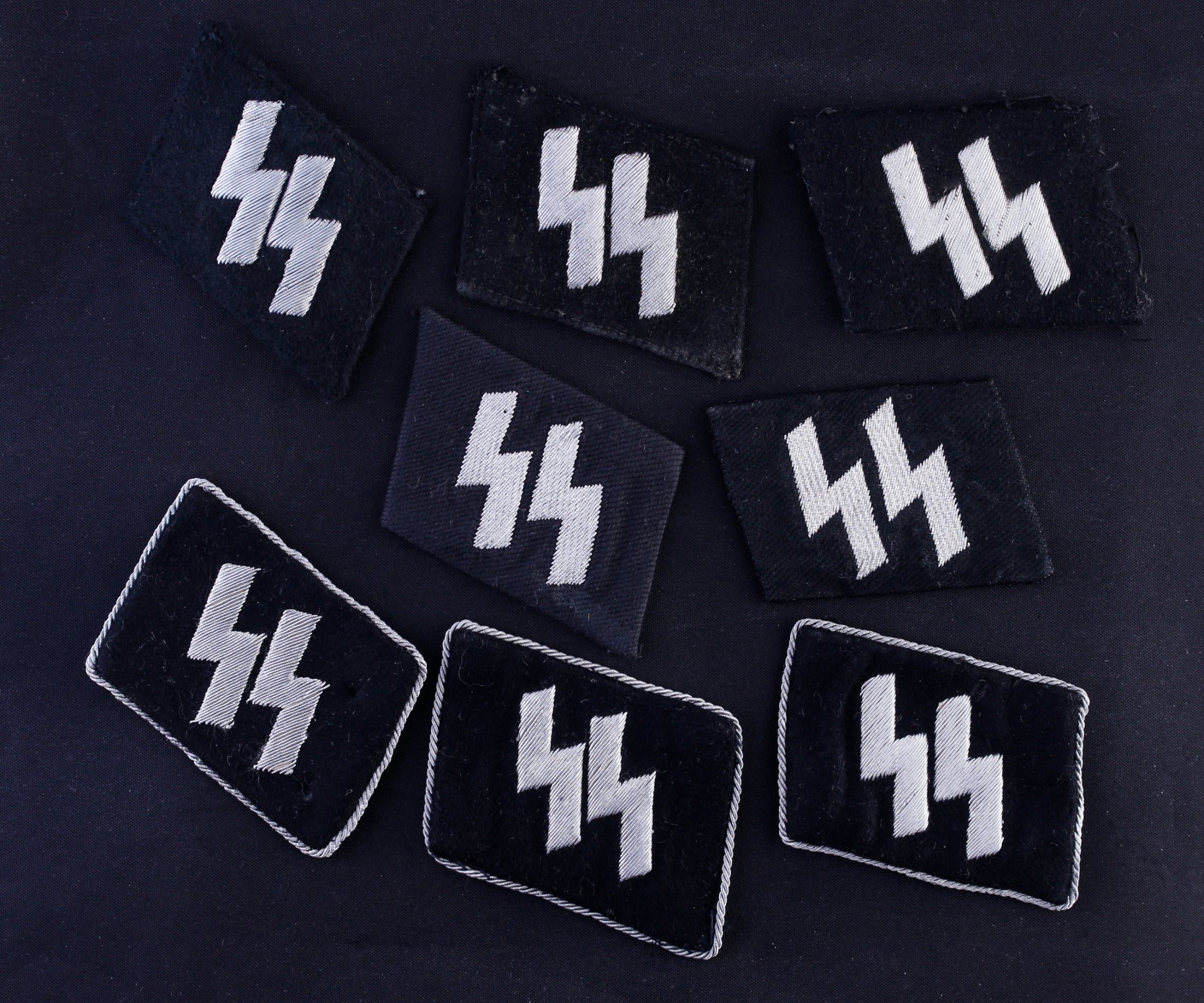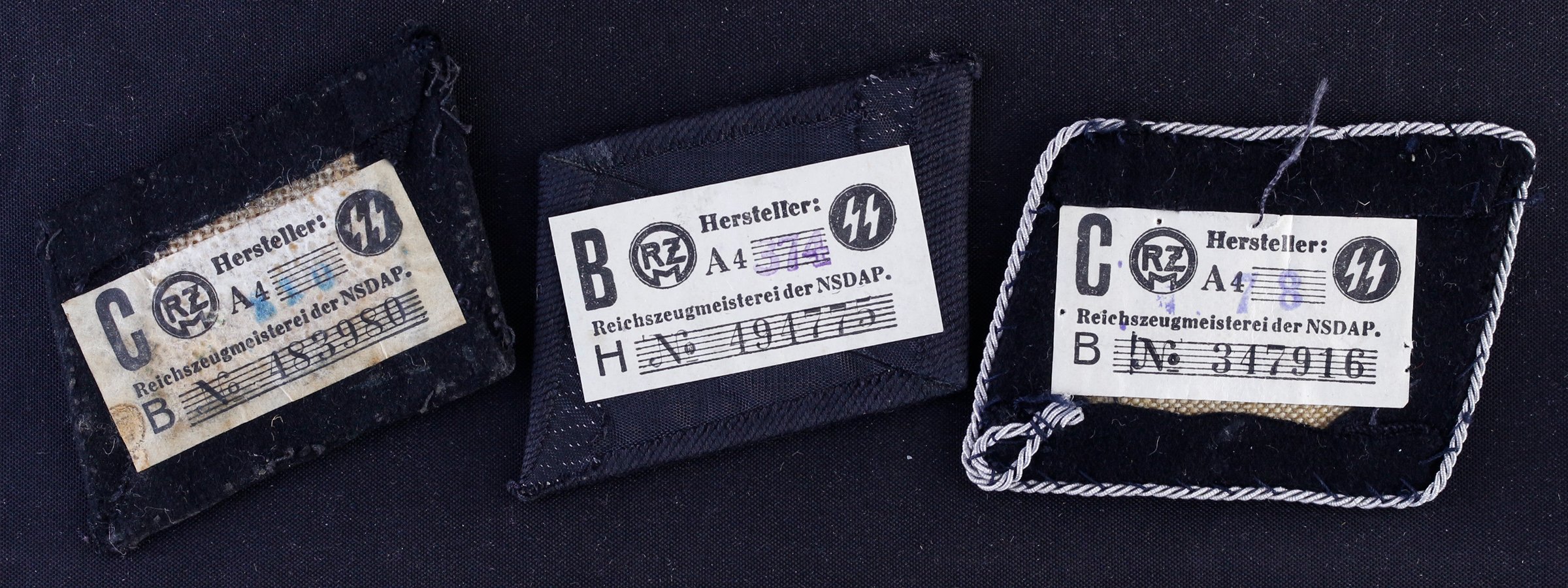 Valik hõbeniidiga ruune - ülemises ja alumises reas on käsitööna valmistatud embleemid ja keskmises reas peenikese metallniidiga masinkootud embleemid. Masinkootud hõbedasi ruune tegid kaks valmistajat ja nende tehase kood oli märgitud sinise tinditempliga embleemi tagumisele küljele liimitud paberetiketile - nendeks olid valmistajad koodidega 134 ja 374 (lisatud pildil vasakul on 374 ja paremal 134). Valmistaja 374 tegi täpselt samasugust embleemi ka peenikese puuvillaniidiga. Väga tihti viidatakse hõbeniidiga valmistatud embleemidele (kraenurgad, kotkad ja varrukalindid) kui ohvitseride omale aga tegelikult see paika ei pea. Igaüks võis endale soovi korral uhkemaid embleeme osta ja vormikuubedele õmmelda. Kraenurga puhul eristas ohvitseri oma sõdurist embleemi serva õmmeldud hõbepeal nagu on näha viimase rea embleemidel. Ei olnud ka haruldane kui ohvitser ajas hõbepaela serva ka tavalisele puuvillaniidiga õmmeldud embleemile.