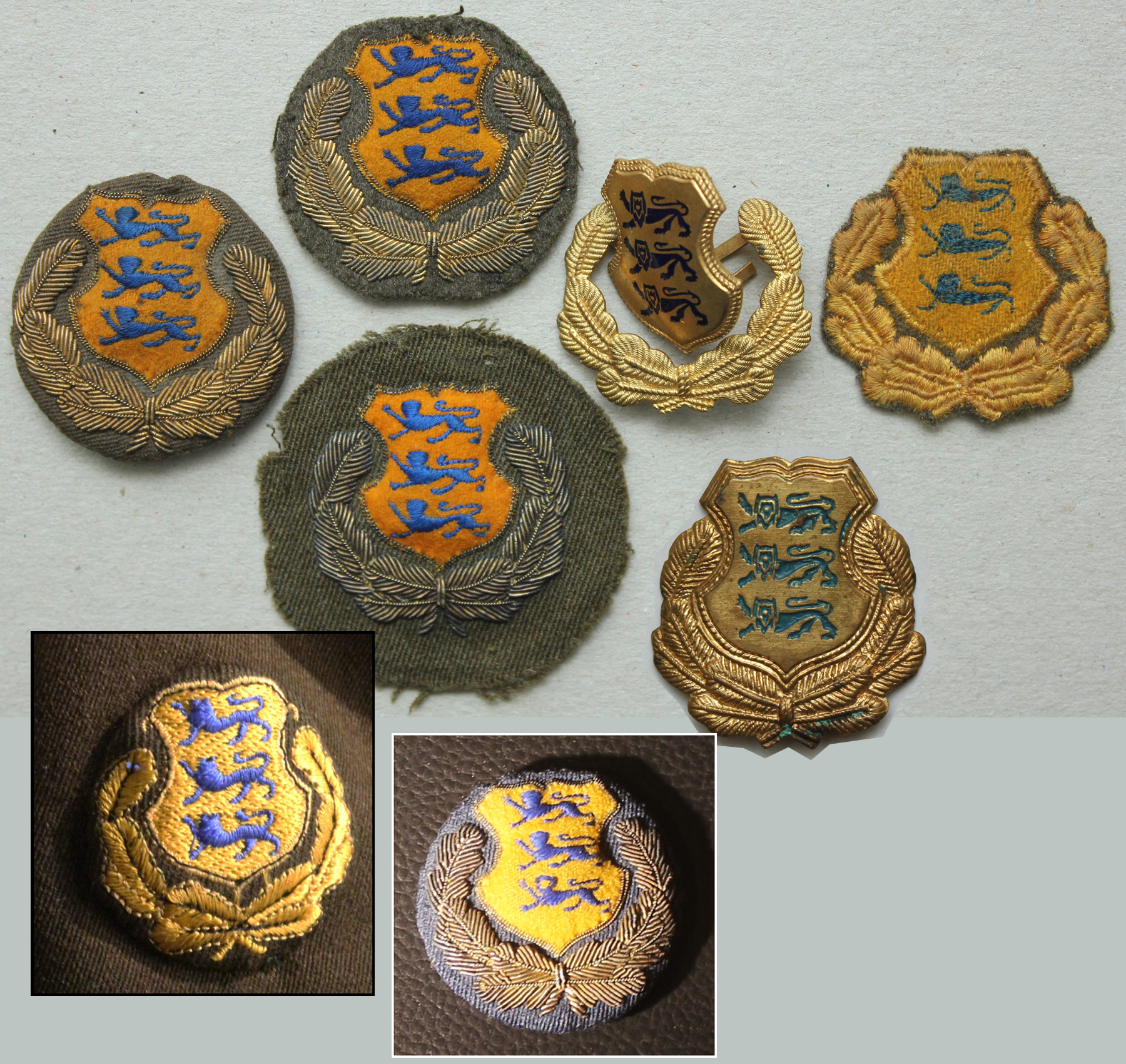 Sõjamuuseumi näitusel "Eesti vormi lugu 1917 - 1940" on 1940. aastal nooremleitnandiks ülendatud Kristjan Pett'i vormikuuel veel üks isemoodi teostusega EW ohvitseri varrukaembleem (pildil all vasakul) ja ühes vitriinis on väljas ka lennuväe sinisele kangale tikitud embleem. On keegi kohanud ka mustale riidele tikitud samasugust - see peaks nendest ilmselt kõige haruldasem olema?