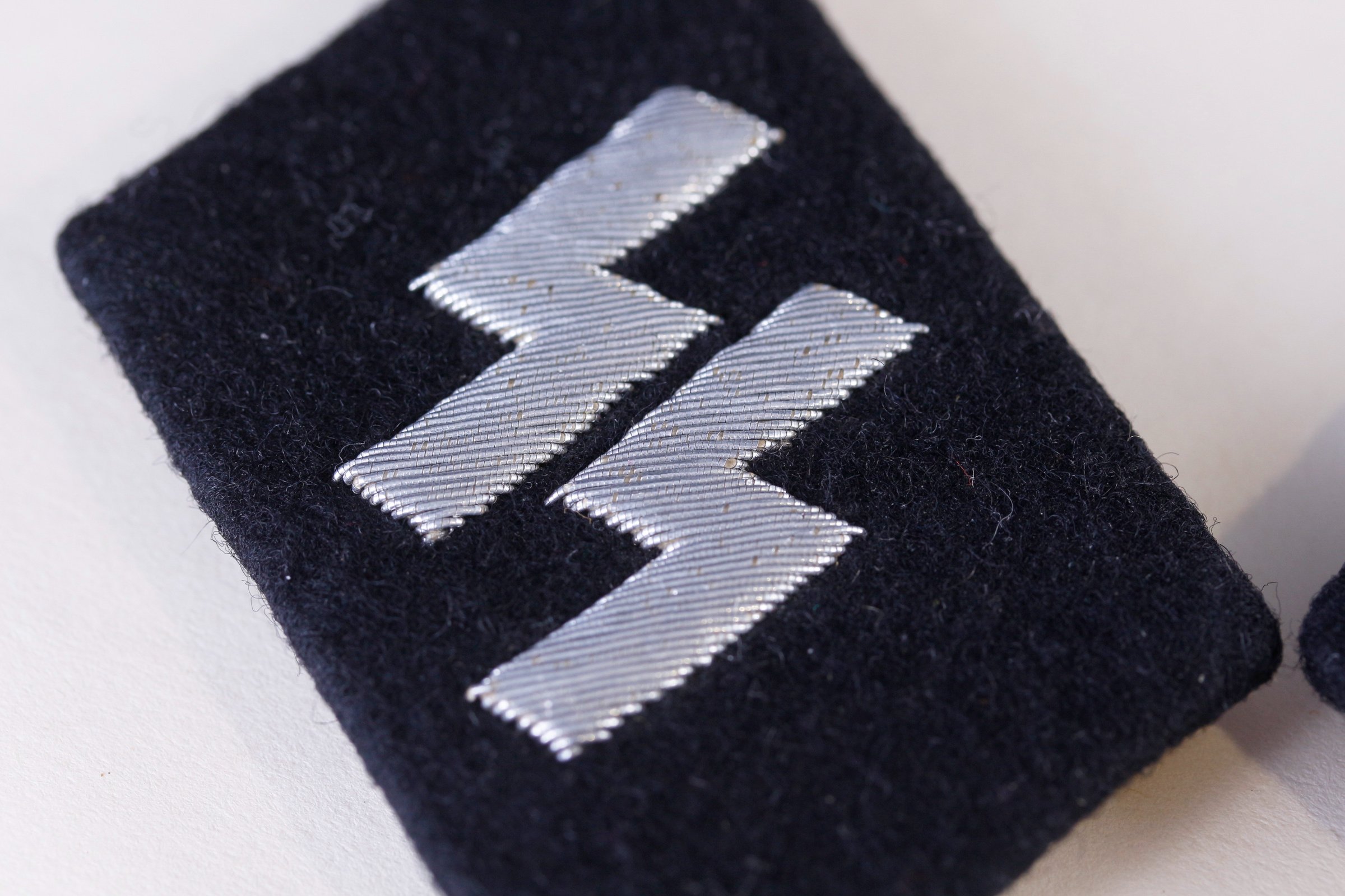 Selle teema 11. lehel kirjutasin natuke pikemalt ruunidega kraenurkadest ja sellest, et neid hõbeniidiga embleeme võis iga vähe edevam sõdur endale poest osta. Hiljuti lisandusid mu kollektsiooni Soome vabatahtliku kaprali, Rottenführer Jaakko Rönnemaa eriliselt uhked, hõbeniidiga käsitsi tikitud ja mutterkinnitusega kraenurgad. Sedalaadi mutterkinnitust kohtab pigem kõrgema auastmega ohvitseride kraenurkade puhul - Standartenführer ja sealt üles. Selline ruunikomplekt on väga haruldane.