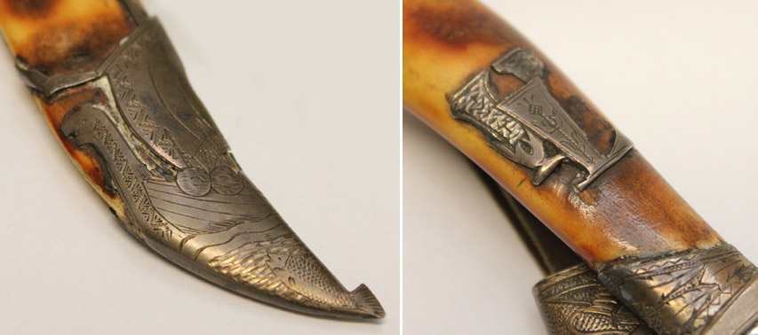 Käepide ja tupp valmistatud luust, metallosad peaksid olema hõbedast.