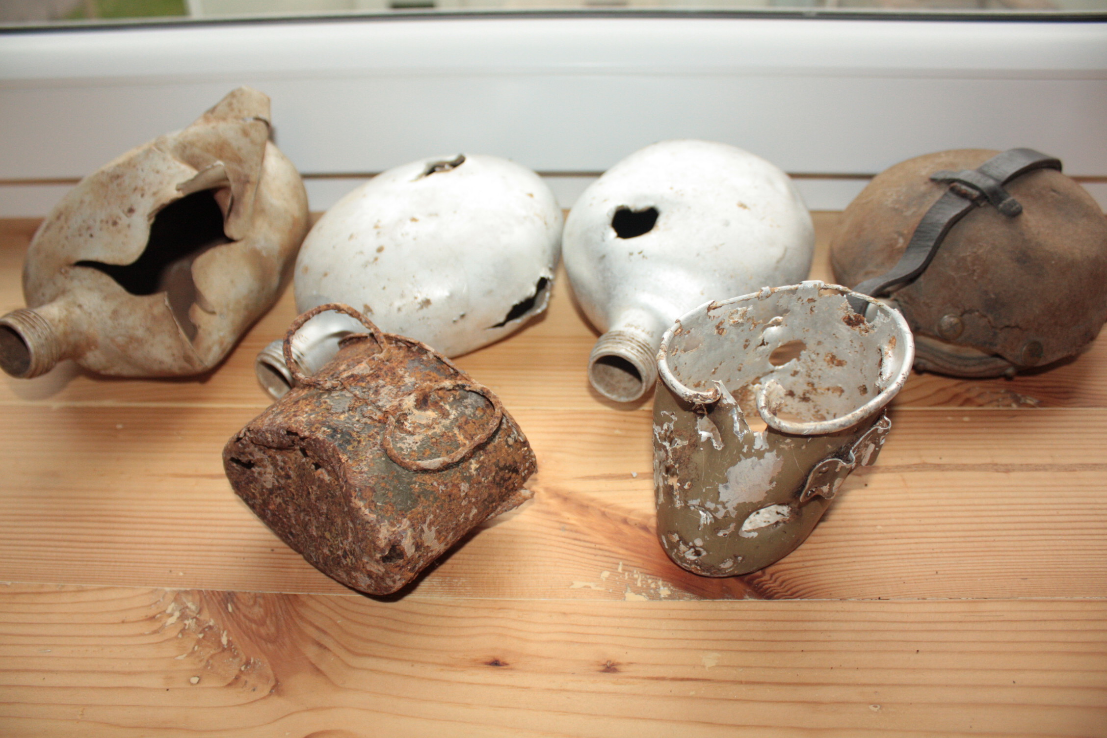 Tuli välja, et neid galvaniseeritud raudpudeleid toodeti ühes Hollandi vangilaagris, WAF-i vahendusel viimastel päevadel kohe hunnikute kaupa kraami nähadivine kirjutas: Vasakpoolne kääbus on samuti mu jaoks uudne vaatepilt, läigib nigu maiteamis! Parempoolne harilikus mõõdus pudel kõrval puhtalt võrdluseks: