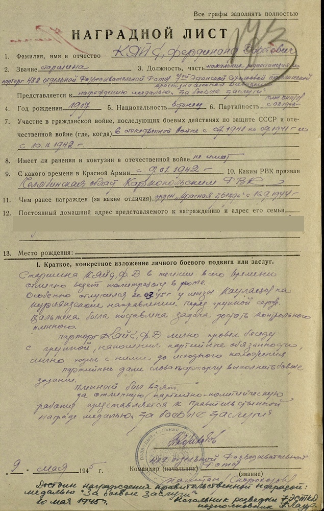 Vanem Käis, 7. Laskurdiviisi 482. Üksiku luureroodu raadiojaama ülem. Punatähe ordeni ja lahinguteenete medali kavaler. Kahjuks saab hetkel näidata põhimõtteliselt ainult dokumente, loodame, et autasud ka päevavalgele ilmuvad.