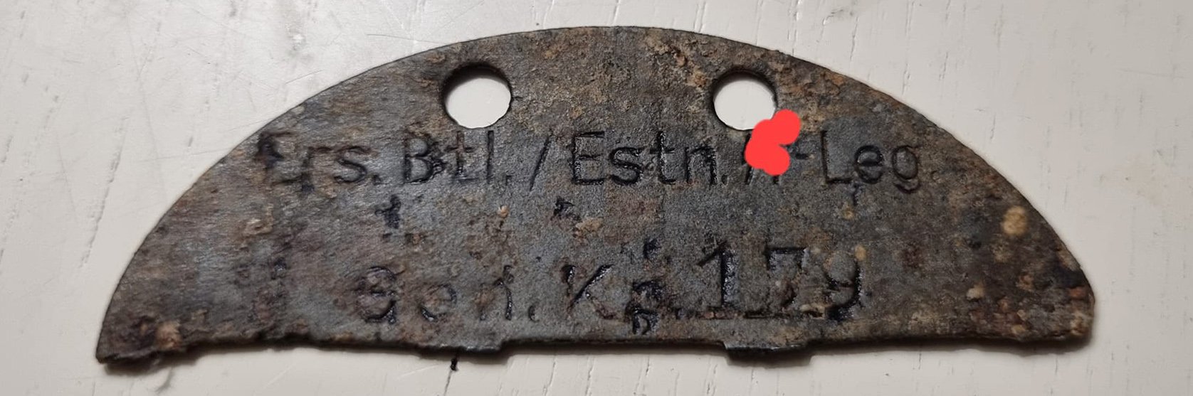Paar päeva tagasi näidati ühes FB grupis hiljuti välja kaevatud Eesti Leegioni žetooni, millist mina polnud varem kohanud. Olen näinud selliseid, millel alumisel real on kas Stab või kompaniid tähistavad numbrid ühest kuni neljani - sellel siia postitatud eksemplaril on aga Gen.Kp. (Genesungskompanie) ehk maakeeli kosujate kompanii.