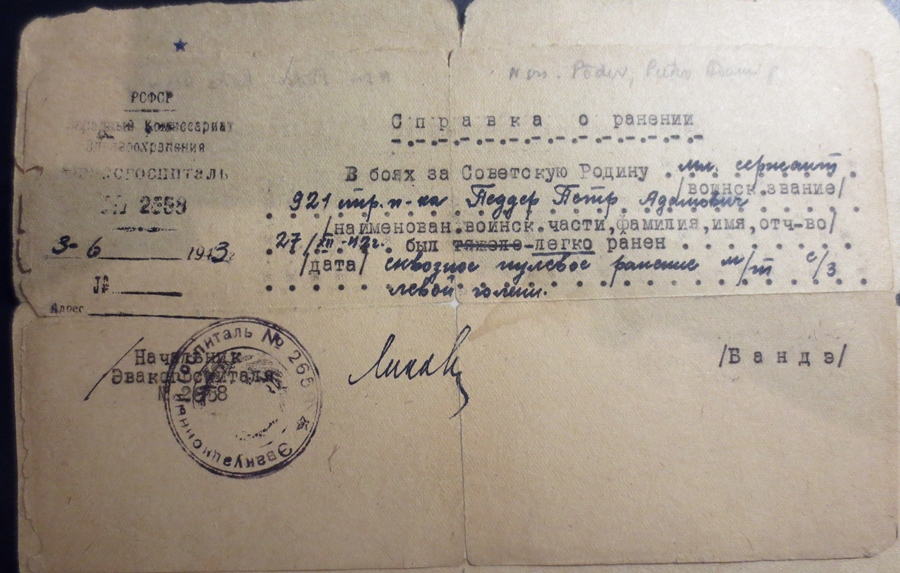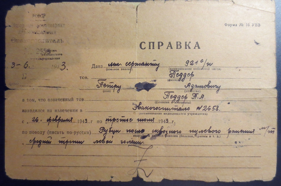 Peeter Põder. Pealetungi ajal vastasele Sõrve säärel, Kargi küla juures, asus rivist välja langenud komandöri asemele ja sai Vapruse medali. 921. Laskurpolgu võitleja, autasustamise hetkel nooremseersant. Autasude ajutised tunnistused on huvitavad ja üsna haruldased asjad... lisaks ka muid tunnistusi, näiteks haavatasaamise kohta 1943. aastal ja tõend välihospidalist. Medalit kahjuks ei ole.