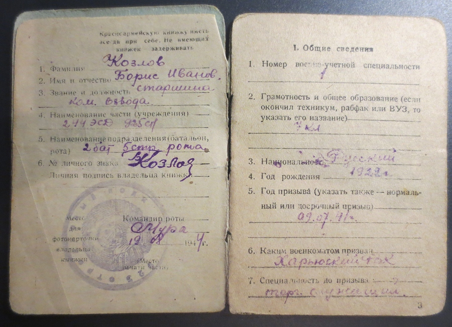 925. Laskurpolk, vanem Boris Kozlov. Vapruse medali nr. 3442417 kavaler, sai Sõrve sääre lahingutes 1944 aasta Septembris raskelt haavata.