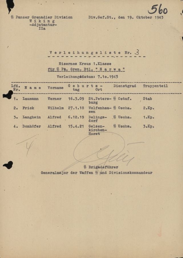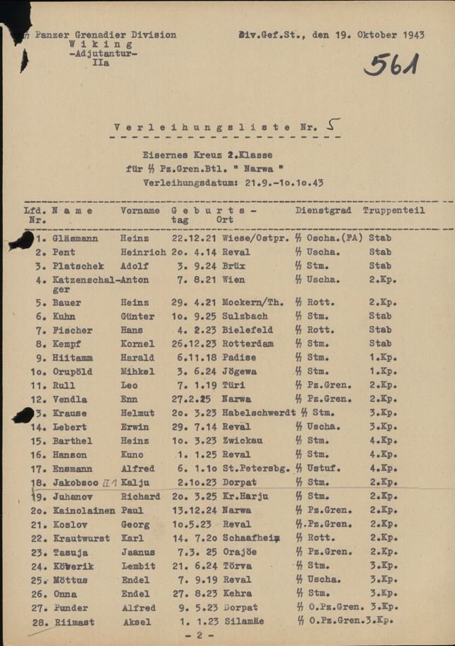 uscha kirjutas: T Okt 20, 2020 6:41 pm 888. Untersturmführer Ernst Kabrits - EK2 (3./SS-Pz.Gren.Btl. Narwa, EK2 14.03.1944)
