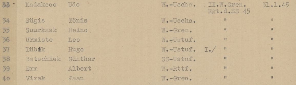SS-Uscha Erich Murumägi 15.4.1920 Vahastu 5./SS-Rgt.46 30.1.44