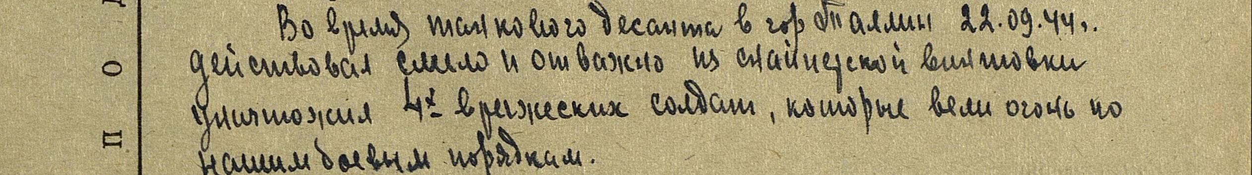 Raske on venekeelsest käekirjast aru saada. Kas saan õigesti aru, et slava ordeni 3. järk on omistatud Sepa küla lahingu eest 17.09.1944. Saan aru, et snaiprina lasi maha 5 saksa sõdurit ja vigastas kahte hobust... mis peale seda kirjas on? Keegi teab, et millist Sepa küla silmas peetakse. Kas Jõgevamaal Tabivere vallas?