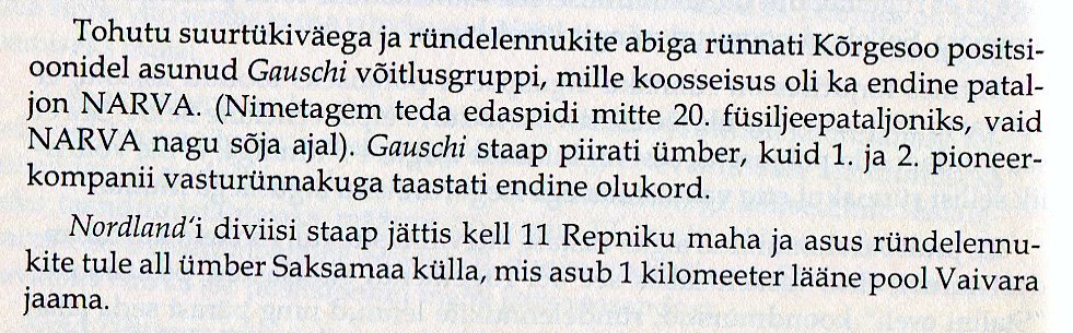 Kell 6.40 läheb üksus rünnakule ja vallutab Tulsi, Oravamäe, Lipsu, Mesipuu, Viiendi, Meeri, Auvere jaam jne.