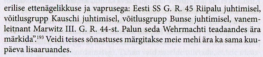 Esile tõstetakse 45. rügemendi ülemat Riipalu, lahingugruppide juhte Kauschi ja Bunset ning von der Marwitzit 11. jalaväediviisist