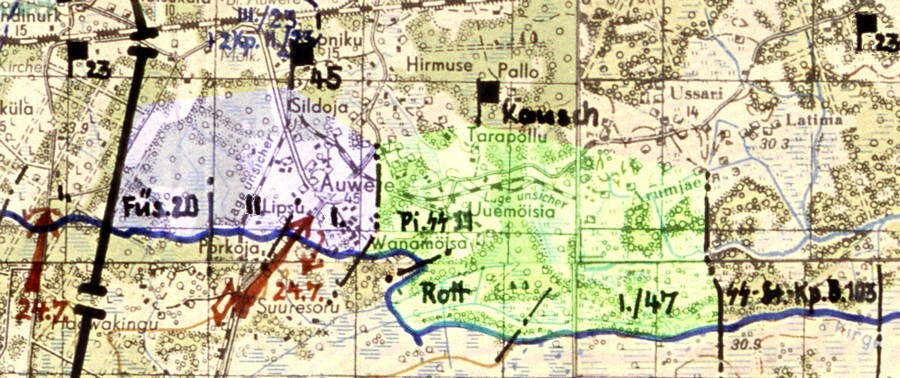 Saksa kaardile on 45. rügemendi lõiku märgitud siiski ainult kolm üksust - 20. füsiljeepataljon, 45./I ja 45./II