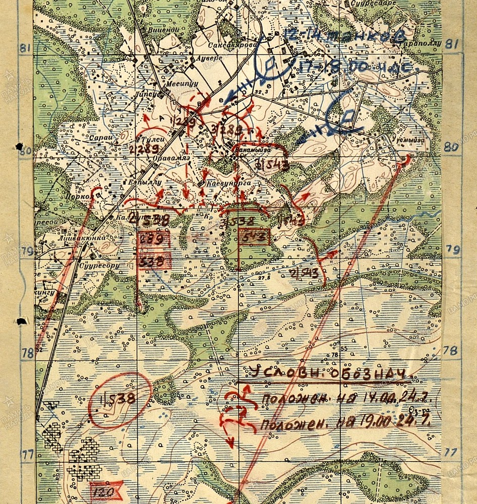 Sellele kaardile on märgitud esmakordselt iseliikuvad suurtükid ja tankid, lisaks vasakul 201. laskurdiviisi 191. polgu 1 pataljon.
