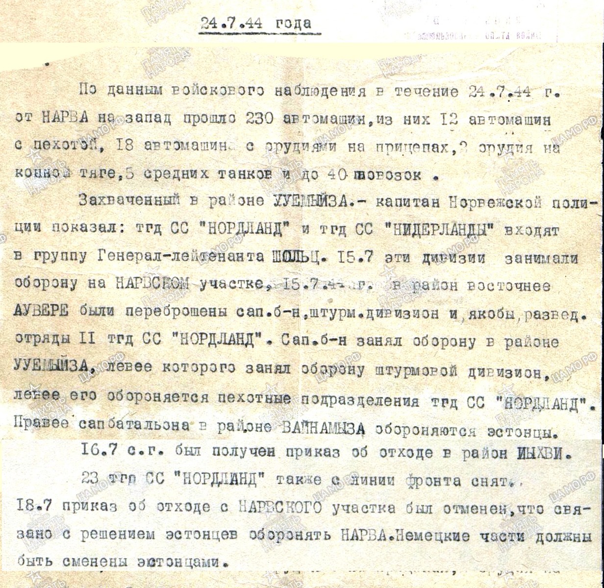 16. juulil anti käsk „Nordlandi“ diviisi üksuste koondamise kohta Jõhvi.