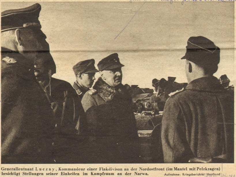 An den grossen Erfolgen in schweren Abwehrkampf gegen die Bolschewisten an der Narwa-Front hat die Flakartillerie, die Luftwaffe entscheidenden Anteil. Tag für Tag zerschlägt sie dem Feinde Bunker und Stellungen, vernichtet Tanker und zerbricht mit ihrer durchschlagenden Feuerkraft schwerste Infanterieangriffe.
