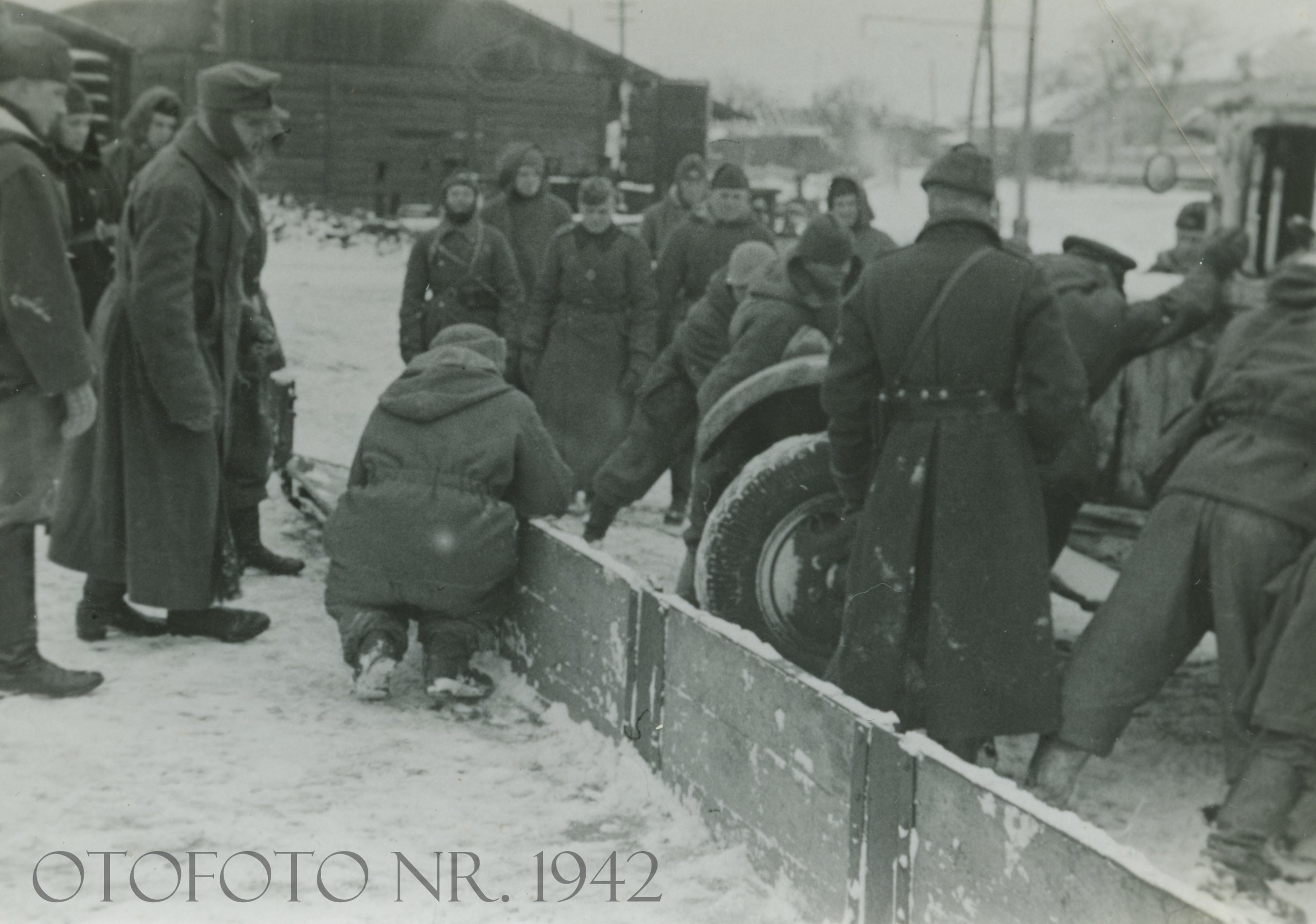 Paar pilti peale rongisõidul toimunud riietuse jaotamist - on tõesti näha Saksa sõjaväe kuubesid, palituid, talvejopesid ja pükse. Nagu ta päevikus kirjutab - mütse nad ei saanud. Ja tõesti on ka fotodel näha, et ainult ühel sõduril on Saksa sõjaväe nokaga välimüts ja kõigil teistel EW / Läti armee mütsid või Punaarmee talvemütsid.uscha kirjutas: ↑K Jaan 24, 2024 7:56 pm 20.11 tehti meist sõidu-peal saksa soldatiteks! Selleks anti igal peatusel, kus sinel, kus püksid j.n.e. Lõpuks jäi ainult müts ja relvad puudu ja need on puudu tänapäevani! Poisid trööstisid küll üksteist, et kannatage, kannatage – järgmises jaamas saate tingimata saksa mütsi. Rihma ja keele – aga senini ei ole saadud neid.