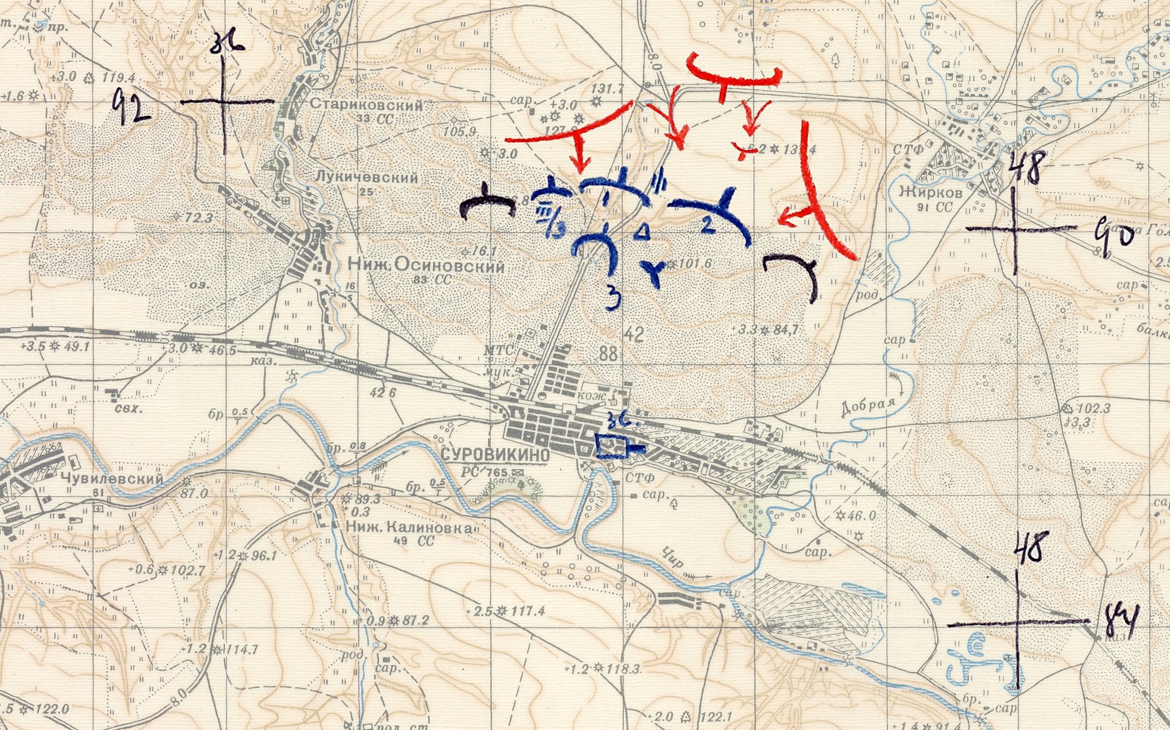 Kella 18.00 paiku muutsime veel asukohta. Võtsime positsiooni sisse umbes 3 km Surovikino alevist põhja poole. Öö jooksul kaevusime. Olgugi, et tuleristsed tulid ootamata oli meeste meeleolu siiski hea – eriti tõstis tuju vastase kiire taandumine.