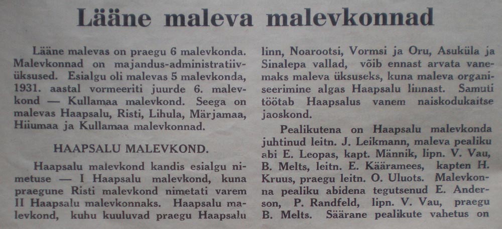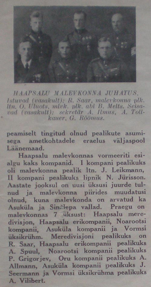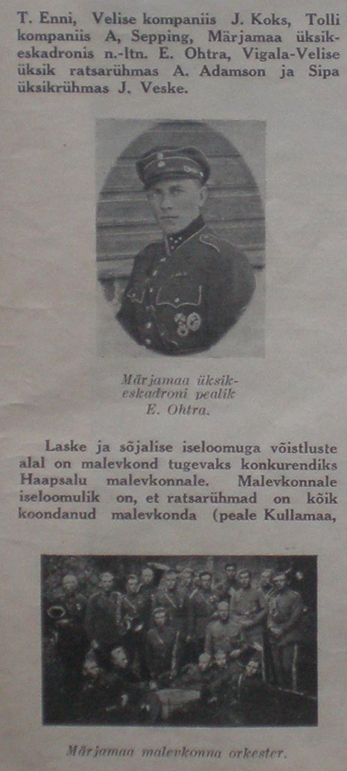 Natuke informatsiooni Lääne maleva, Haapsalu ja Märjamaa malevkondade kohta (pildistasin maha 1935. aasta 7. juuli Lääne Maleva teatajast). See foto, mis ma siia varem postitasin ja oletasin, et tegu Lääne maleva orkestriga on tegelikult hoopis Märjamaa malevkonna orkester, sama pilt on ka selles Lääne Maleva teatajas).