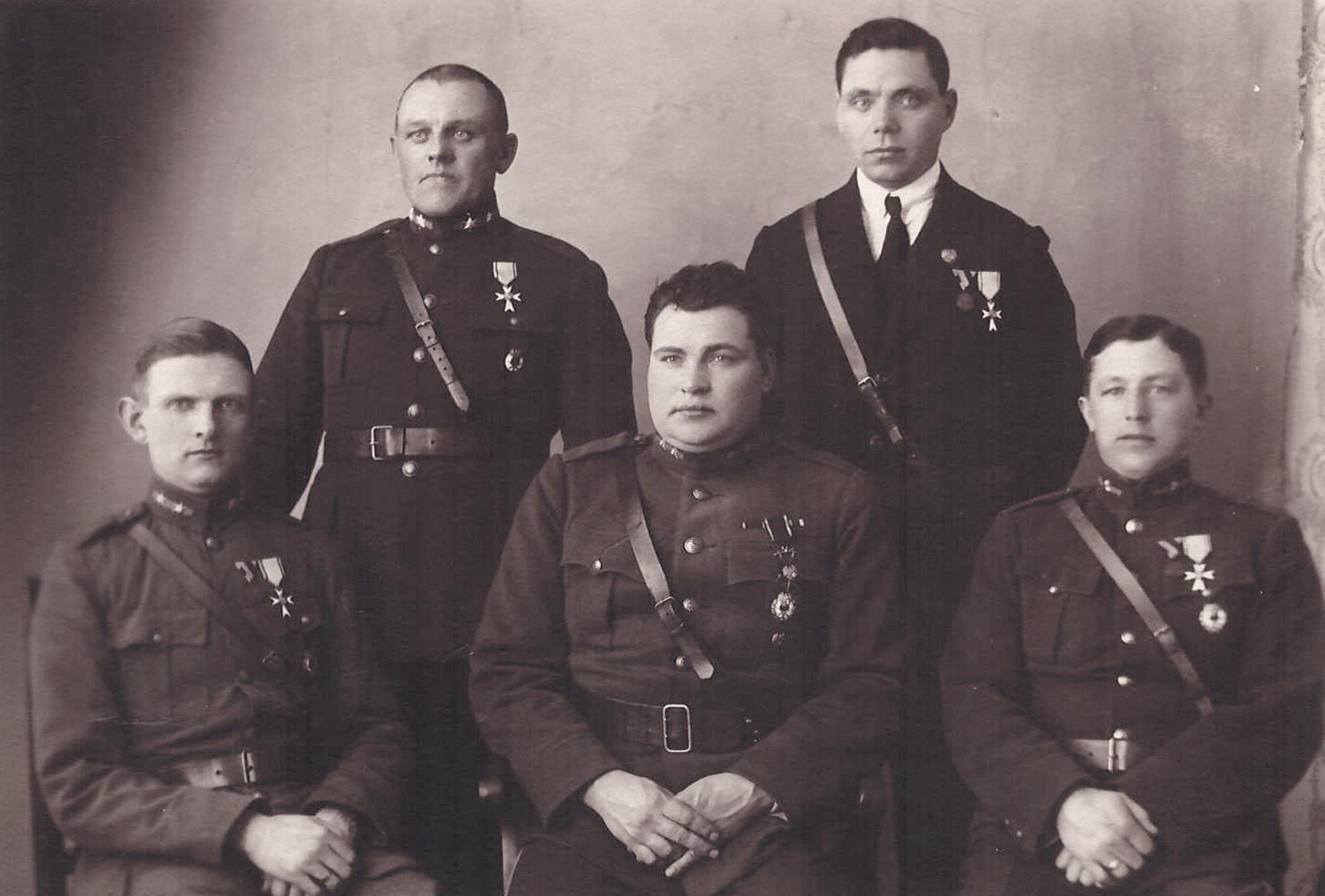 Toon näite ühest teisest jalgratturite fotost, mille ka siia foorumisse kunagi postitasin, seltskond Järvamma Kihme kandi jalgrattureid, spetsialistide poolt paigutatud tsaariaega, üsna mitmel mehel seljas ja peas aga Vabadussõja aegsed frentšid - mütsid, lisaks ilmselt üks mees ka tsaariaegse urjadniku kuue ja mütsiga.