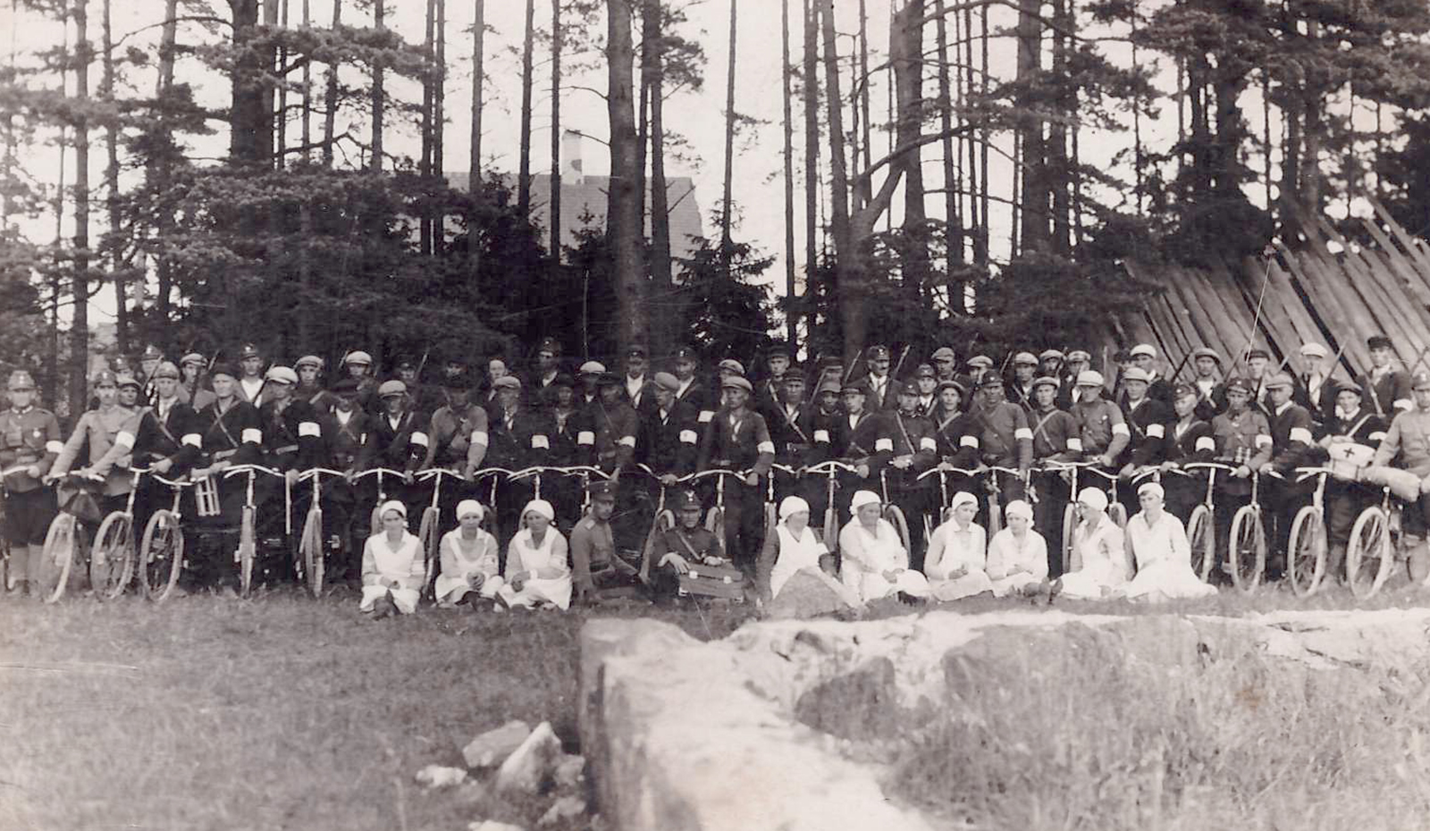 Keeruline küsimus. Jalgrataste järgi midagi dateerida ei oska. Raske on vahet teha enne sõda ja pealesõda tehtud jalgrataste vahel, sõja ajal ilmselt enam tsiviilelanikonna kätte rattaid ei sattunud, va sõjaväe kasutuses olnud rattad, mis tsivilistide poolt "rekvireeriti". Üldse ei ole selliste otse ja eemalt pildistatud jalgrataste puhul eriti lihtne tootjatki määratleda...Üldiselt enne I MS jalgratas meil eriti levinud ei olnud, maksis ta ikkagi kenakese kopika ja igaüks endale tallapressi lubada ei saanud. Rain Vaikla on välja toonud, et aastal 1921 oli ametlikel andmeil registreeritud 5930 jalgratast. Pildil on 15 meest jalgratastega, osadel neist on taga tuvastatavad kandilised registreerimisnumbrid. Osa mehi on püssideta, ühelgi mehel pole jalas säärsaapaid, 2-l mehel on frentšid, mitmel mingisugused militaar-stiilis nokkmütsid - mine võta kinni, mis ajaga tegemist.ivalO kirjutas:Kas võiks olla pildistamise aastaks 1919?