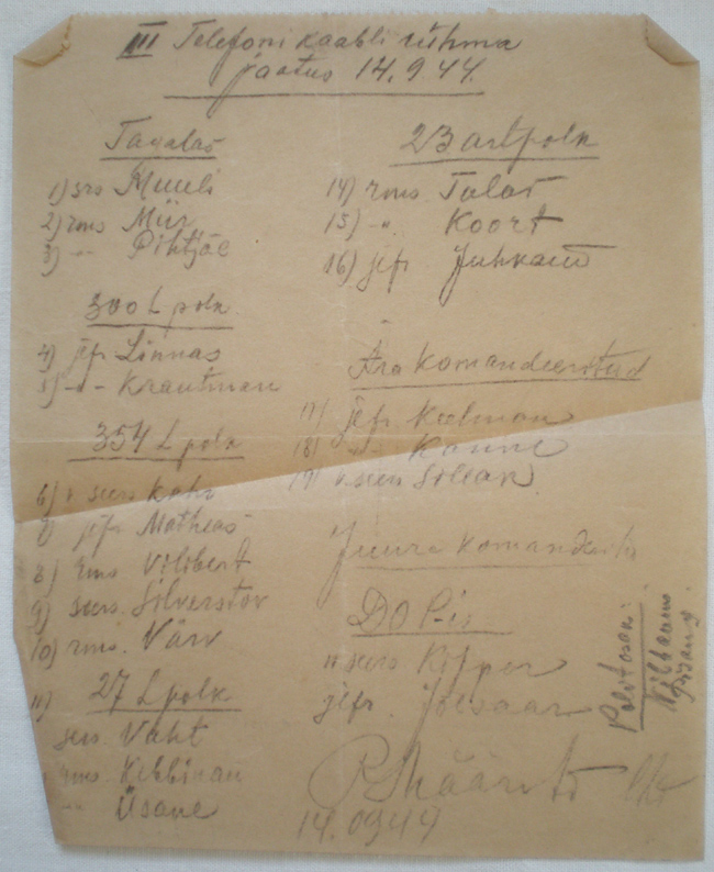 L. Hallop (kt.) (1943 nr. 161-169); K. Kivi (1944 nr. 27-312); G. Reitsak (1944