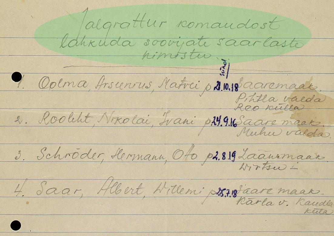 Kõik nad olid üksusega liitunud peale Tallinna vabastamist ja selle paberi põhjal on võimatu öelda, kas see komando loodi alles peale 28. augustit või oli juba varem (juuli/august) olemas.