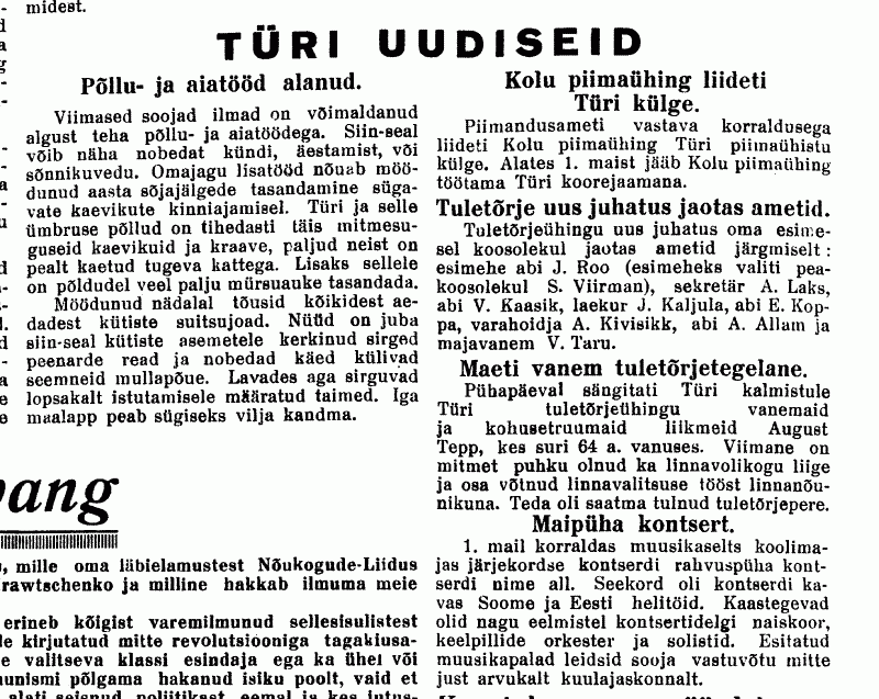 Ei mäletagi, kas ma neid artikleid juba postitanud olen aga esmapilgul ma neid siin ei näinud. Et siia on Türi teema kokku kogunenud, kaasa arvatud saatemast, panen ka siia.