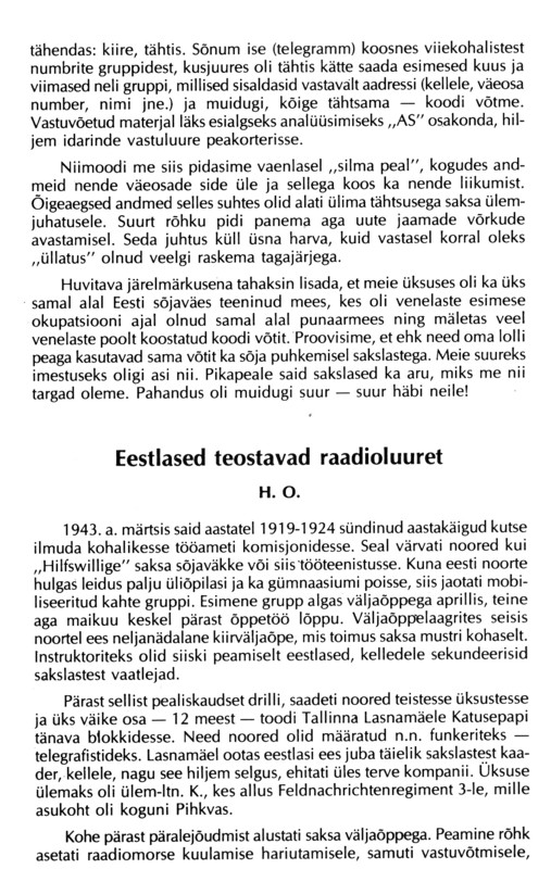 Tänan, seda enam, et wehrmachti pealehel on tekstidest lõpust jupid puudu.ivalO kirjutas:Kel raamatut käepärast ei ole, neile toon ära seal kirjapandu.