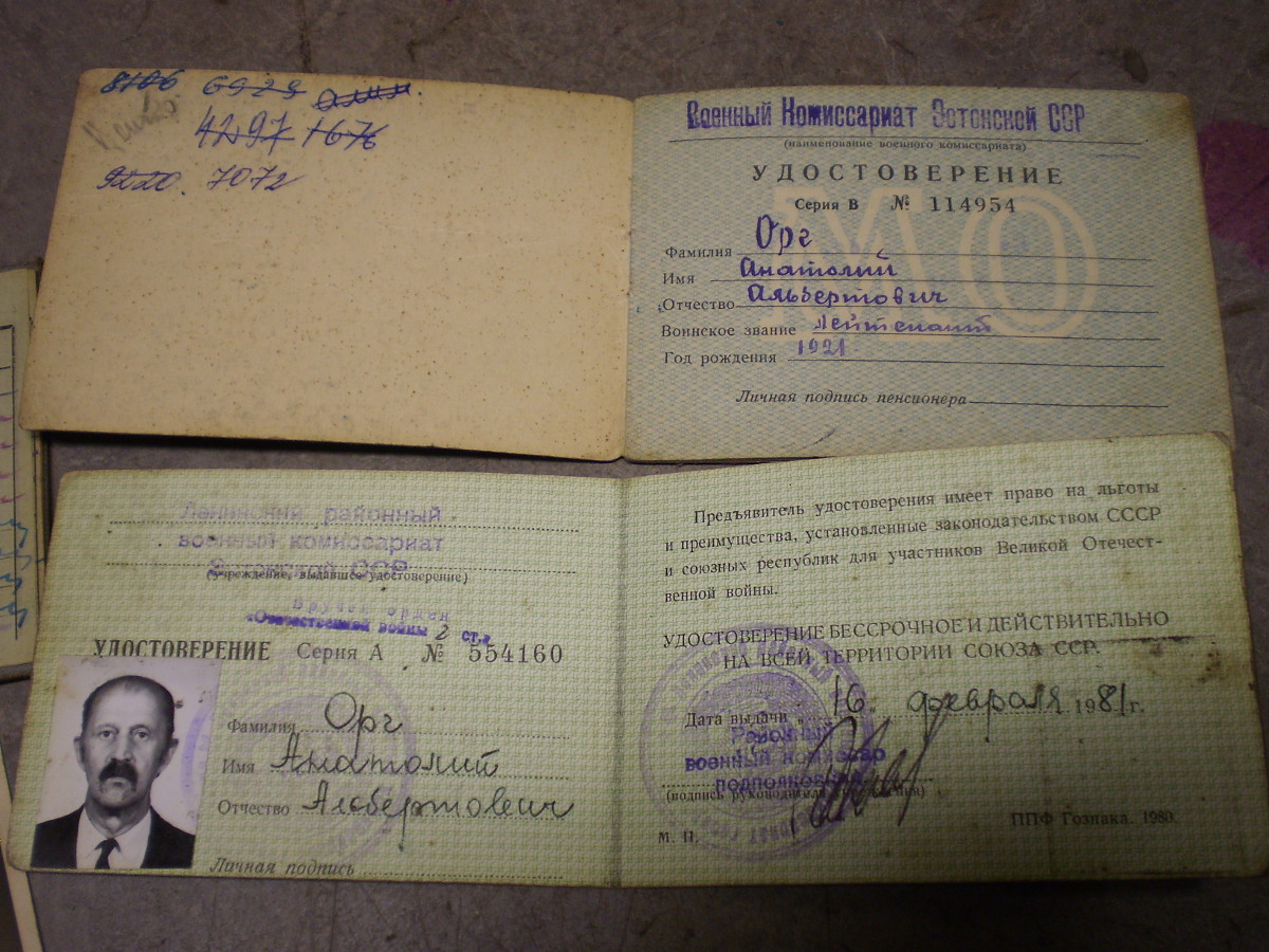 Kunagise ujumisässa Anatol Org-ile kuulunud piletid. Komsomoli pilet on sõjaaegne aga kas ka spordikohtuniku oma? Sees on küll kirjas, et kohtunikuks sai 1943 aastal.
