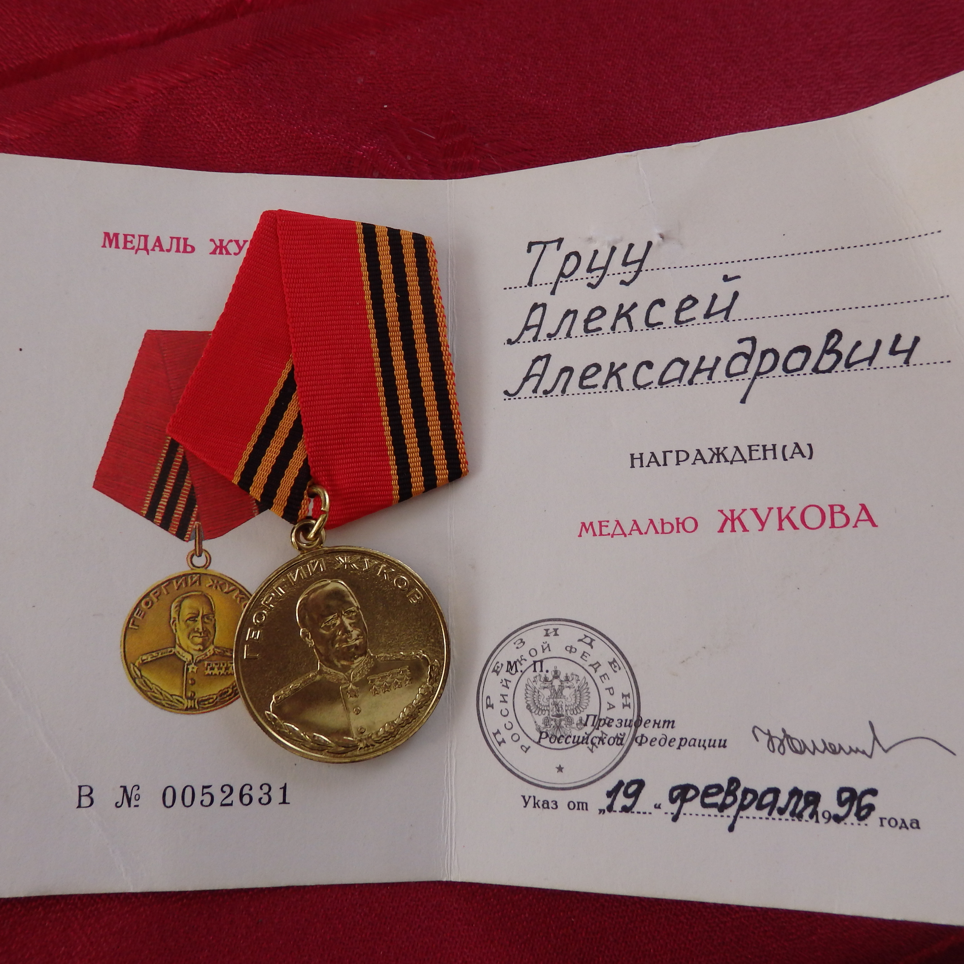 Lisaks Aleksei Truu komplektile :tossom kirjutas:925. lp jefreitor Aleksei Truu. Saaremaa mees. Vapruse medal saadud 1944. a Veebruaris Sõrve sääre lahingutes ülesnäidatud vapruse eest, Kuulsuse orden 363370 aga 1945. aastal ja haavata saamiste eest. Truu sai kolm korda haavata- raskelt 30.12.1942 Velikije- Luki all, kergemalt 19.19.1944 kodumaa pinnal toimunud lahingutes ja taas raskelt 19.03.1945 Kuramaal...